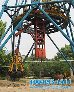 中央回轉式抓巖機[豎井抓渣機]的懸臂(或稱轉臂)懸吊分瓣式抓斗,繞吊盤中央360°回轉,抓取開采豎井過程中暴破產生的井底工作面的巖石渣土,裝入專用吊桶內,直接晉升到地面運輸系統除渣。20世紀80年代中期開始出產豎井抓巖機,90年代中期開始研制出大斗容豎井抓巖機,主要有HZ-4型和HZ-6型中央回轉抓巖機[抓渣機]。HZ-4型和HZ-6型中央回轉式抓巖機,以及0.4立方和0.6立方的抓斗是結合現階段我國開掘豎井出產中實際的需要,經由數次改進后的定型產品。合用于凈直徑3m以上井筒,巖石塊度不大于600毫米。本機的動力為電動液壓控制。