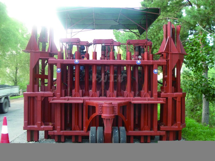 一種新型的路面破碎機(jī),一種帶兩個(gè)碎路錘、兩條起重傳動(dòng)鏈及兩個(gè)碎路錘掛卡裝置的路面破碎機(jī)。一般的路面破碎機(jī)只有一個(gè)碎路錘,起重傳動(dòng)鏈提升碎路錘后,碎路錘即下落砸擊路面,而起重傳動(dòng)鏈還需空轉(zhuǎn)半周才能再次提升碎路錘,造成了時(shí)間的浪費(fèi)和機(jī)器空轉(zhuǎn)時(shí)燃料的浪費(fèi),效率不高;而且,路面破碎機(jī)在挪地方時(shí),要人工提起碎路錘后再移動(dòng)機(jī)器,操作很不方便。雙錘路面破碎機(jī)通過(guò)兩條起重傳動(dòng)鏈交替提升兩個(gè)碎路錘,充分利用了整個(gè)起重傳動(dòng)鏈轉(zhuǎn)動(dòng)周期,兩條起重傳動(dòng)鏈一先一后每周期共可兩次提升碎路錘;此外,碎路錘掛卡裝置可以方便地將碎路錘掛起來(lái),避免了在移動(dòng)破碎機(jī)時(shí)人工將碎路錘提起的麻煩。因此,其綜合效率提高了兩倍以上。