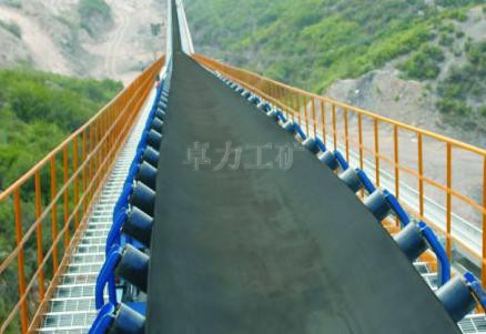 TD75型皮帶輸送機(jī)由于輸送量大,結(jié)構(gòu)簡(jiǎn)單,維護(hù)方便,成本低,通用性強(qiáng)等優(yōu)點(diǎn),而被廣泛地應(yīng)用在冶金、礦山、煤炭、港口、交通、水電、化工等部門(mén),進(jìn)行裝車(chē)、裝船、轉(zhuǎn)載或堆積各種常溫狀態(tài)的松散密度為500~2500kg/m3各種散狀物料或成件物品.由單機(jī)或多機(jī)組合成運(yùn)輸系統(tǒng)來(lái)輸送物料,根據(jù)工藝要求可布置成水平或傾斜的形式。該系列皮帶輸送機(jī)允許輸送的物料塊度取決于帶寬、帶速、槽角和傾角,也取決于大塊物料出現(xiàn)的頻率.該系列輸送機(jī)適用的工作環(huán)境溫度一般為-25~+40℃。