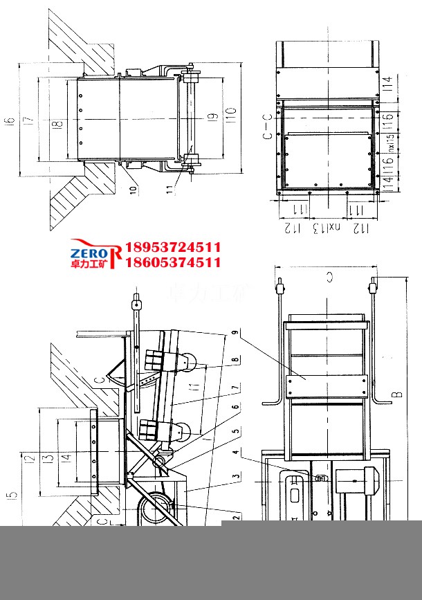 1.K型往復(fù)式給料機(jī)有帶漏斗與不帶漏斗及帶調(diào)節(jié)閘門與不帶閘門組合成的多種型式,如帶漏斗,帶調(diào)節(jié)閘門;帶漏斗不帶調(diào)節(jié)閘門。