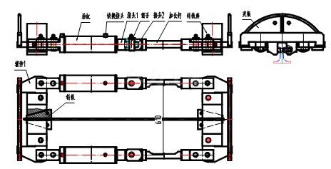 該設(shè)備適用于50kg/m及60kg/m型號鋼軌無縫線路應(yīng)力放散和長軌鋪設(shè),更換斜鐵座,可適用于75kg/m鋼軌線路?,F(xiàn)場施工時,在低于鎖定軌溫的一定范圍內(nèi),用該設(shè)備把處于零應(yīng)力狀態(tài)的鋼軌,強行拉伸到鎖定軌溫時的長度,進(jìn)行重新鎖定。與同類產(chǎn)品相比,該設(shè)備具有構(gòu)思獨特,機體輕便,操作簡易,拉軌力大,不傷害軌頭工作面等特點。二、主要技術(shù)參數(shù)1、最高額定工作壓力 57Mpa2、最大拉軌力 2×450kN3、工作油缸最大行程 ≥760mm4、兩拉桿中心距 360mm寬體610mm5、鎖定方式 斜鐵夾緊軌腰6、油泵電機功率 3kW電壓 380V流量 ≥3L/min7、機組質(zhì)量 ≤370kg8、電動泵站質(zhì)量 85kg(不包括油管)三、基本結(jié)構(gòu)與工作原理