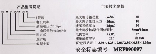 為適應(yīng)煤礦井下的使用環(huán)境,整個(gè)設(shè)備除了電機(jī)外沒(méi)有任何用電回路,極大的保證了井下的使用安全。同時(shí),泵的設(shè)計(jì)十分緊湊,便于礦井罐籠運(yùn)輸和井下作業(yè)。由于HBMD-20/10-75S型煤礦用混凝土輸送泵采用了S管閥換向,料斗攪拌器將按一定配比的骨料,送至攪拌筒,加入適量的水,通過(guò)充分?jǐn)嚢韬笮纬蛇m合泵送的物料。該泵可廣泛地作為煤礦井下充填,注漿,和噴漿的多用途設(shè)備。